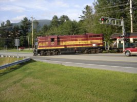 This is a section of the former Maine Central Mountain Division that is now run by the Conway Scenic Railroad (CSRX). Bartlett was the base for the Mountain division helpers and had 3 stations over the years. The surviving one is a converted freight shed that had a diesel engine house in one end. The round house had it's turntable removed to accommodate several 2-6-6-2 articulated engines that were assigned to the task of helper service up through Crawford Notch, and a wye was installed to turn the engines instead.
