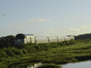 AMTK 90214 flying 690 across Scarborough Marsh on June 20th of 2009.