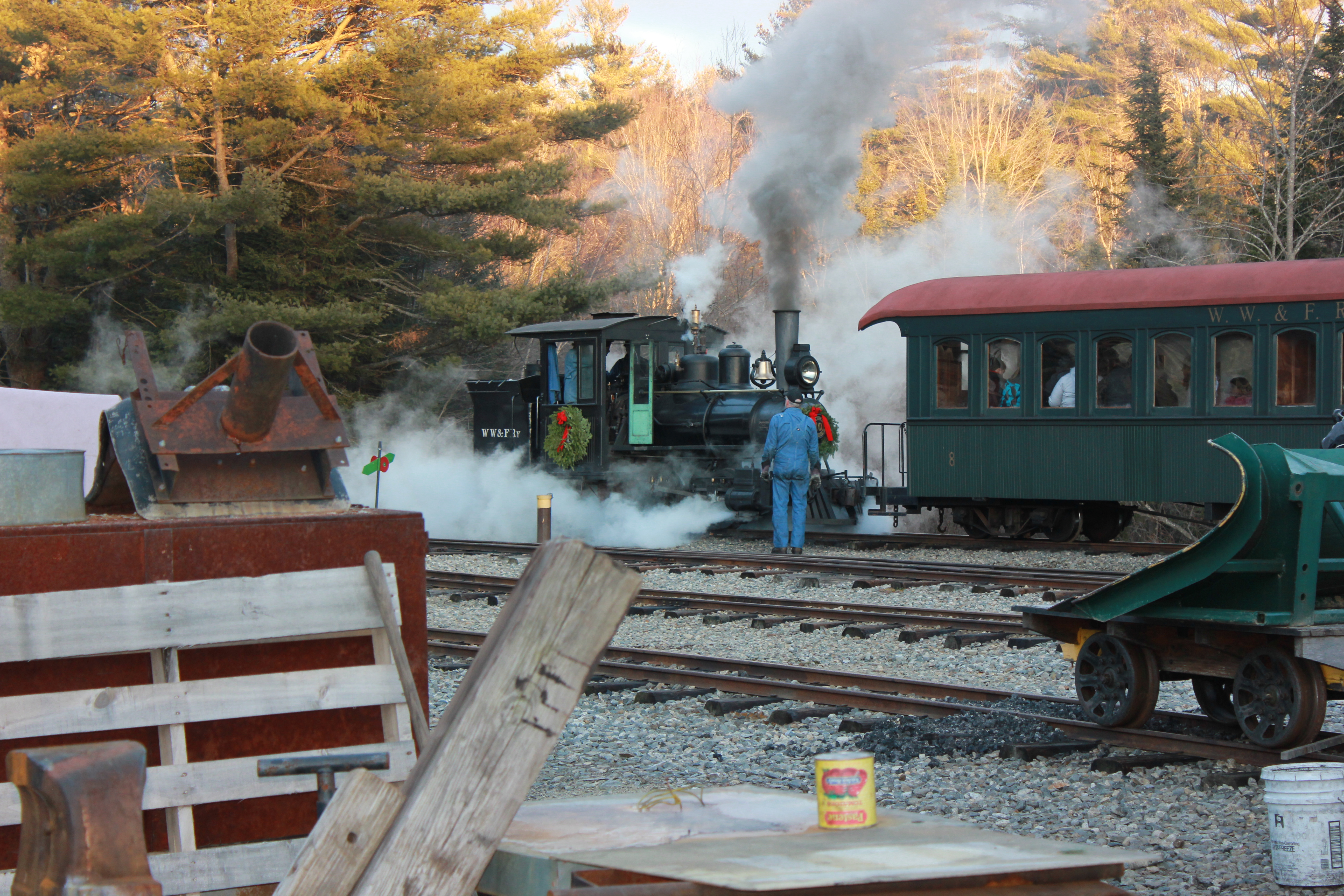 A Christmas ride on the Wiscasset, Waterville & Farmington at Sheepscot Station on December 20th of 2014.