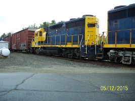 MEC 377, WA-3 in Waterville Yard on May 12, 2015 putting away new arrivals. These engines have not shown up in service.