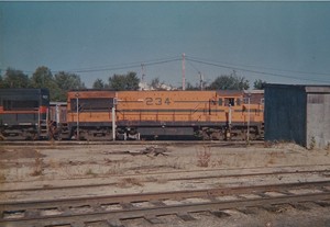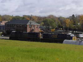 B&M 333, CSXT 8104, BNSF 569, & CSXT 5834 in the Rigby engine pool on the 26th of October 2005.