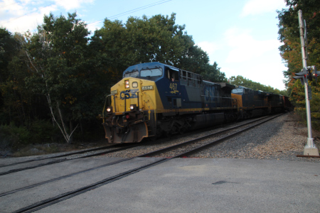 CSXT 7774 and 8833 lead L070 through Winthrop on the 19th of April, 2025.