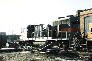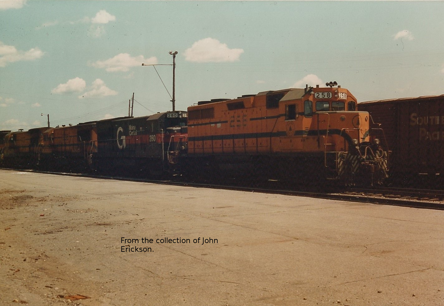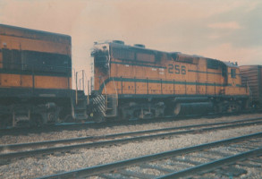 The GP38 series was built between January of 1966 and December of 1987, weighs 250,000 lbs and uses a 645E 16 cylinder diesel prime mover that develops 2000 hp, and 61,000 lb of tractive effort, and carries 1700 gallons of fuel. My thanks to The Diesel Shop for the information.