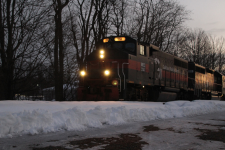 MEC 514 leads PORU through Libby in Lewiston on January 29th of 2023.