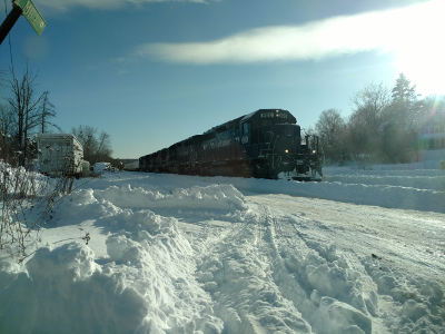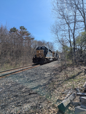 CSXT 7774 and 8833 lead L070 through Winthrop on the 19th of April, 2025.