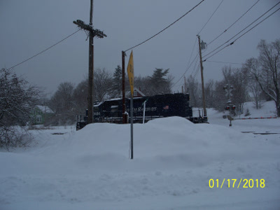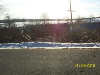 MEC engines 3401 511 & 7605 take WAPO over Hackett Rd in Auburn on December 28th of 2017.